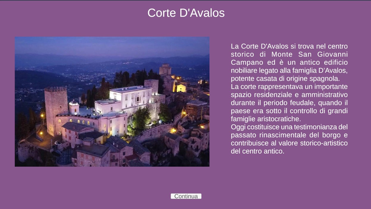 Attraverso il gioco, l’utente non solo si diverte, ma apprende curiosità e aspetti culturali del territorio, vivendo un’esperienza immersiva che unisce apprendimento e intrattenimento. I livelli sono pensati per essere progressivi e accessibili, così da coinvolgere sia ragazzi che adulti, trasformando la scoperta di Monte San Giovanni Campano in un’avventura interattiva e stimolante.